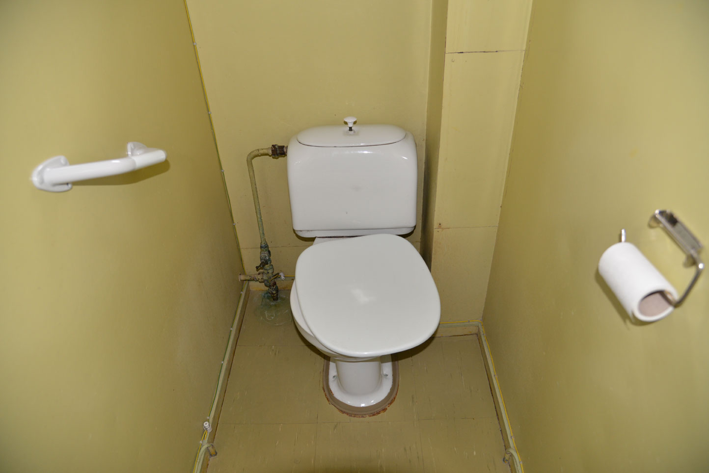 - Det gamle dorommet med baderom bak veggen til venstre. Doen var ødelagt og rant hele tiden.