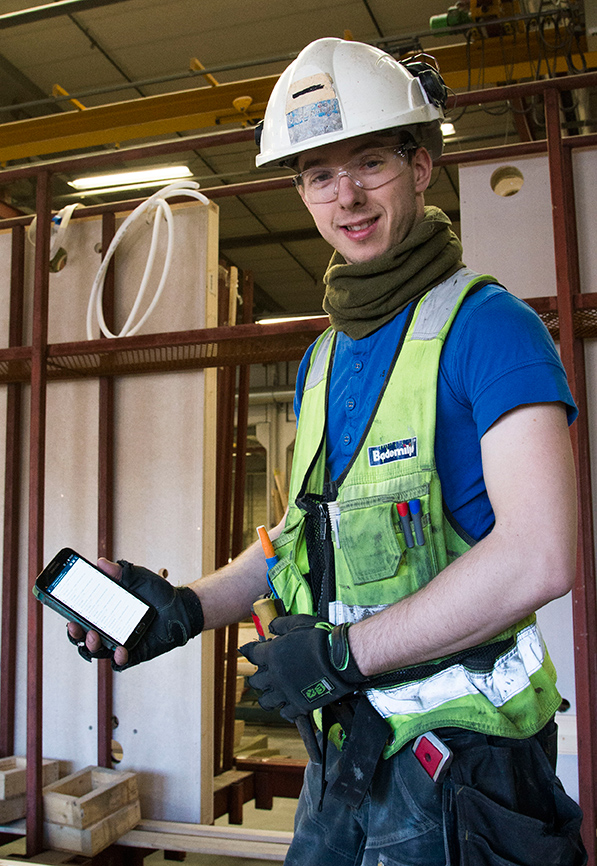 – Vi lager minimum tre slike sjaktvegger pr. dag, forteller han mens han leter fram mobilen og tar bilder av det arbeidet han har gjort. Bildene legger han så inn i en database knyttet til prosjektet.